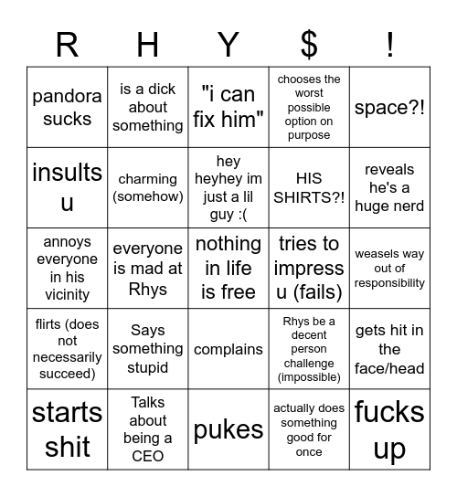 Bingo card, drinking game, whatever! Think of things your character is just doing all the time, or writing quirks you can't seem to stop using and share them with the class. :>