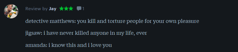 Jason also did some pretty terrible shit in the sim that he's quietly wrestling with. I'd love to dig into that more, though I'm working on that with Grace at the moment! I don't think anyone knows just how violent he can be yet (except for Travis who's fought with him already), so I'd be interested in having that be exposed or even if someone HAD seen him in the sim, and working with how that changes their dynamic.